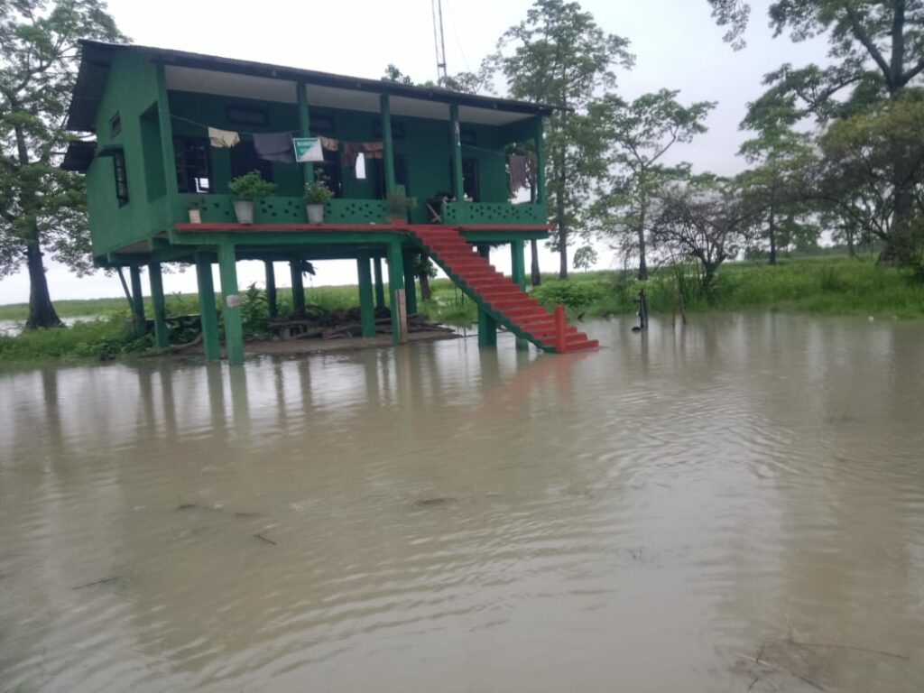 ধনশ্ৰী, পাঁচ নৈ আৰু ব্ৰহ্মপুত্ৰ নদীত পানী বৃদ্ধি হোৱাত ওৰাং ৰাষ্ট্ৰীয় উদ্যানখনত এক ভয়াৱহ পৰিস্থিতিৰ সৃষ্টি হৈছে৷ ওৰাং ৰাষ্ট্ৰীয় উদ্যানৰ প্ৰায় ৭০ % অঞ্চল বানপানীয়ে বুৰাই পেলাইছে৷ব্ৰহ্মপুত্ৰ নৈ, ধনশ্ৰী নৈৰ লগতে পাছনৈৰ বাঢ়নি পানী উদ্যানখনৰ ভিতৰত প্ৰৱেশ কৰাত জীৱজন্তৰ প্ৰতি ভাবুকী আহিছে যদিও ইতিমধ্যে বহু জীৱজন্ত ওখ নিৰাপদ স্থানত আশ্ৰয় লৈছে৷ বানপানীৰ মাজতো বনকৰ্মীসকলে অতি কষ্টেৰে পহৰা দি থাকিব লগীয়া হৈছে৷ উদ্যানখনৰ ৫০ টা কেম্প ৰ ভিতৰত ২০ টা কেম্প জলমগ্ন হৈ পৰিছে৷ উদ্যানখনৰ খয়ৰাচালি, বালিকেম্পত সাতফুট পৰা পোন্ধৰ ফুটলৈ পানী উঠিছে৷