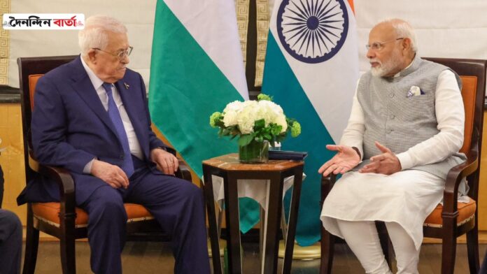 ইণ্টাৰনেশ্যনেল ডেস্ক, ২৩ ছেপ্তেম্বৰ: প্ৰধানমন্ত্ৰী নৰেন্দ্ৰ মোদীয়ে ২৩ ছেপ্টেম্বৰত নিউয়ৰ্কত পেলেষ্টাইনৰ ৰাষ্ট্ৰপতি মাহমুদ আব্বাসৰ সৈতে এক দ্বিপাক্ষিক বৈঠকত মিলিত হয়(PM Modi bilateral meeting with Palestinian President)। এই বৈঠকত প্ৰধানমন্ত্ৰীগৰাকীয়ে গাজাৰ অৱনমিত মানৱীয় পৰিস্থিতি সন্দৰ্ভত গভীৰ উদ্বেগ প্ৰকাশ কৰাৰ লগতে পেলেষ্টাইনৰ লোকসকলৰ প্ৰতি ভাৰতৰ সমৰ্থন অব্যাহত থকাৰ কথা পুনৰ উল্লেখ কৰে(PM Modi US visit)।