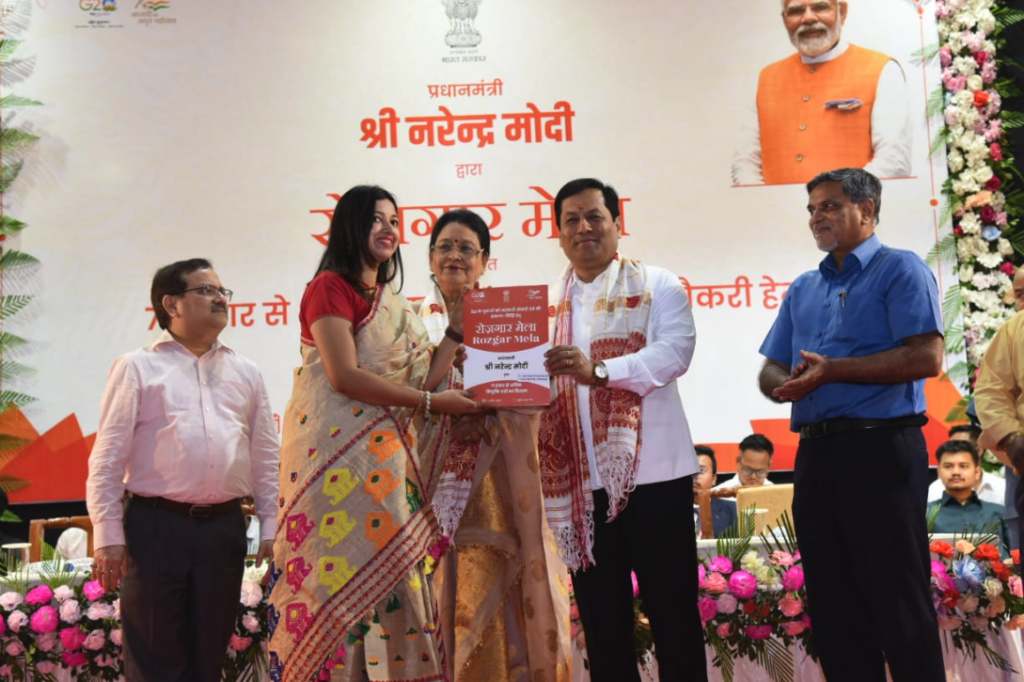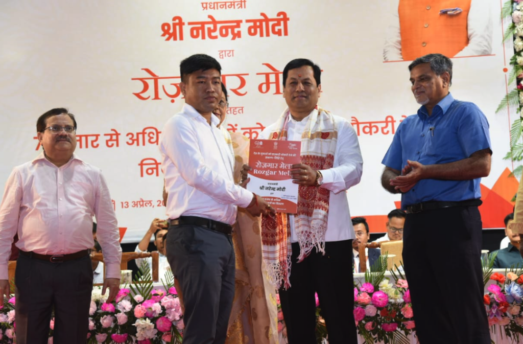আজি নৱনিযুক্তসকলক সম্বোধন কৰি প্ৰধানমন্ত্ৰীয়ে মন্তব্য কৰে যে ২০৪৭ চনৰ ভিতৰত ভাৰত আত্মনিৰ্ভৰ হোৱাৰ লক্ষ্যৰে আগবাঢ়ি যোৱাৰ সময়ত দেশৰ উন্নয়নত অৰিহণা যোগোৱাৰ এয়া এক সুবর্ণ সুযোগ। এই সুযোগৰ সদ্ব্যৱহাৰ কৰি নিষ্ঠাৰে নিজৰ দায়িত্ব পালন কৰিবলৈ তেওঁলোকক সোণোৱালে আহ্বান জনায়৷ গুৱাহাটীৰ অনুষ্ঠানত ভাষণ প্ৰদান কৰি কেন্দ্ৰীয় মন্ত্ৰী সৰ্বানন্দ সোণোৱালে কয়, “আজি এক ঐতিহাসিক মুহূর্ত, কিয়নো আমি প্রধানমন্ত্ৰী শ্ৰী নৰেন্দ্ৰ মোদী ডাঙৰীয়াৰ গতিশীল নেতৃত্বত ৰাষ্ট্ৰ নিৰ্মাণৰ দিশত আমাৰ যুৱপ্ৰজন্মক শক্তিশালী কৰাৰ বাবে আৰু এখোজ আগবাঢ়িছোঁ।