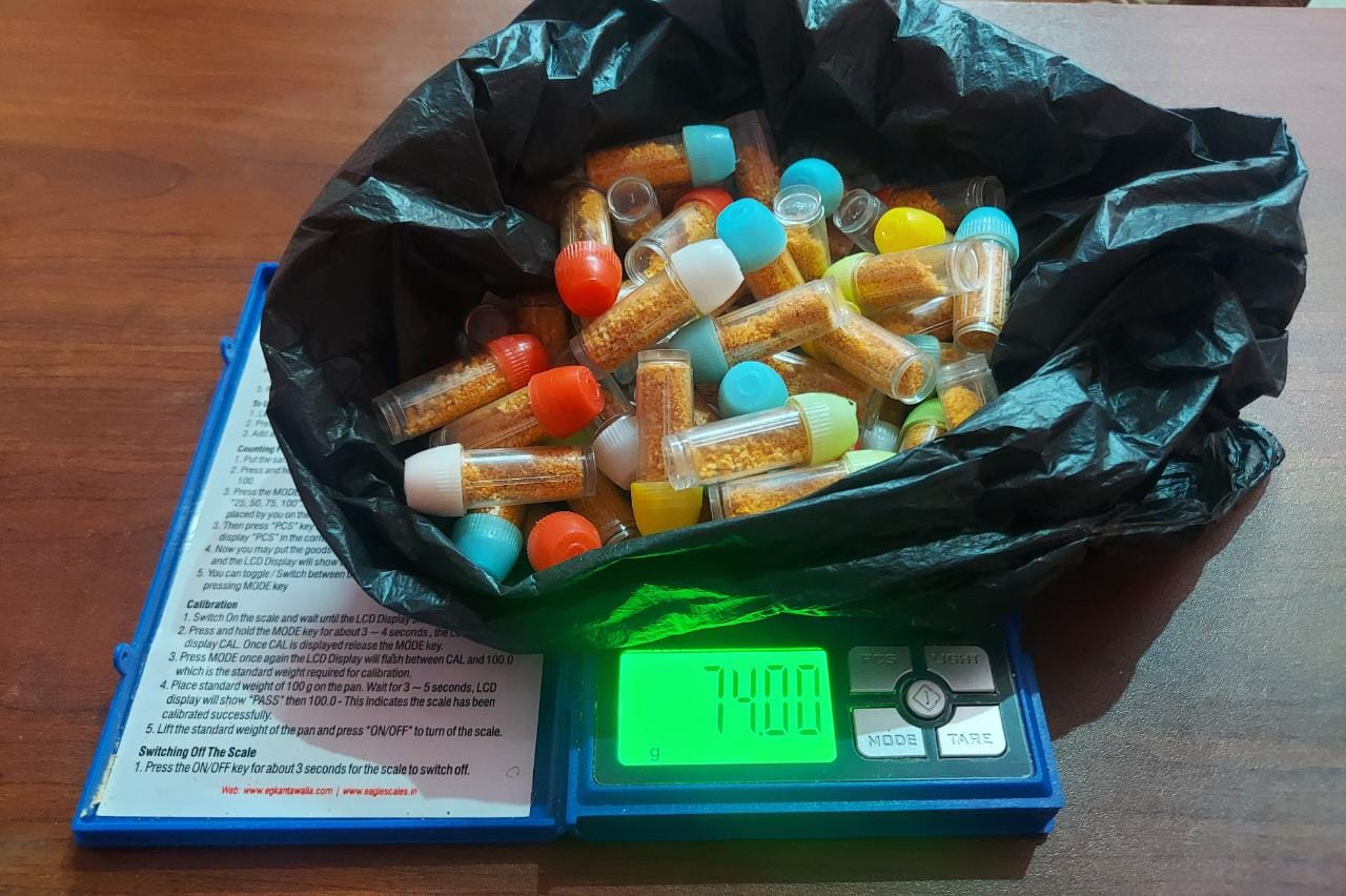 অভিযানত প্ৰভাৱতী বিশ্বাস নামৰ এগৰাকী মহিলাৰ ঘৰৰ ৬০ টা (74 Gm)ড্ৰাগছ ভৰ্তী কণ্টেনাৰ জব্দ কৰে আৰক্ষীৰ দলটোৱ।