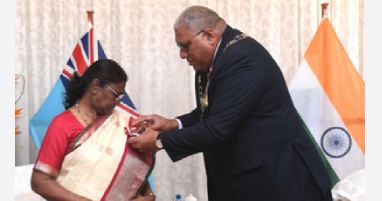 ৰাষ্ট্ৰপতি দ্ৰৌপদী মুৰ্মুক আজি ফিজিৰ সৰ্বোচ্চ অসামৰিক সন্মান ‘কম্পেনিয়ান অফ দা অৰ্ডাৰ’ৰে সন্মানিত কৰা হয়। দেশখনৰ ৰাষ্ট্ৰপতি উইলিয়াম কাটোনিভেৰে মুৰ্মুক এই সন্মান প্ৰদান কৰে। আনহাতে ইয়াৰ পূৰ্বে তেওঁ ফিজিৰ ৰাজধানী ছুভাত ভাৰতীয় বংশোদ্ভৱসকলৰ সৈতে এখন সভাত মিলিত হয়।