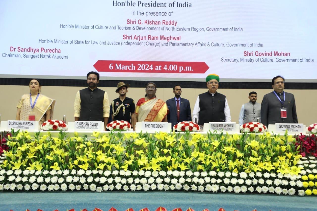 এক আড়ম্বৰপূৰ্ণ পৰিৱেশত নতুন দিল্লীত বুধবাৰে ৰাষ্ট্ৰপতিয়ে প্ৰদান কৰিলে সংগীত নাটক অকাডেমী বঁটা। ৰাষ্ট্ৰপতি দ্ৰৌপদী মুৰ্মুৱে বুধবাৰে ২০২২ আৰু ২০২৩ চনৰ বাবে বিভিন্ন প্ৰদৰ্শন কলা ক্ষেত্ৰৰ মুঠ ৯৪ গৰাকী শিল্পীক সংগীত নাটক একাডেমী বঁটা প্ৰদান কৰে। তেওঁ নতুন দিল্লীৰ বিজ্ঞান ভৱনত আয়োজিত এক অনুষ্ঠানত সংগীত নাটক একাডেমী ফেলোশ্বিপো প্ৰদান কৰে, যাৰ ভিতৰত এটা যুটীয়া ফেলোশ্বিপও আছে। অসমৰ মুঠ ৫ গৰাকী ব্যক্তিয়ে গ্ৰহণ কৰে এই বঁটা।ৰাষ্ট্ৰপতিৰ হাতৰ পৰা বঁটা গ্ৰহণ কৰি অসমবাসী়ক ধন্যবাদ জ্ঞাপন কৰে অসমৰ কেউগৰাকী শিল্পীয়ে। অসমৰ কৰুণা বৰা , ভৱেন বৰবায়ন , গুণাকৰ দেৱগোস্বামী , গোবিন্দ শইকীয়াই গ্ৰহণ কৰিলে বঁটা। বঁটা প্ৰাপকসকলে অসমৰ সাংস্কৃতিক ক্ষেত্ৰখনক আৰু অধিক শক্তিশালী ৰূপত আগবঢ়াই নিয়াৰ অংগীকাৰৰ কথা সাংবাদিকৰ সন্মুখত অৱগত কৰে।