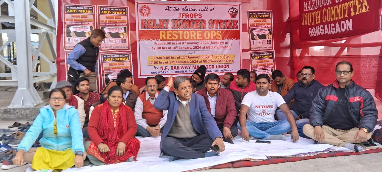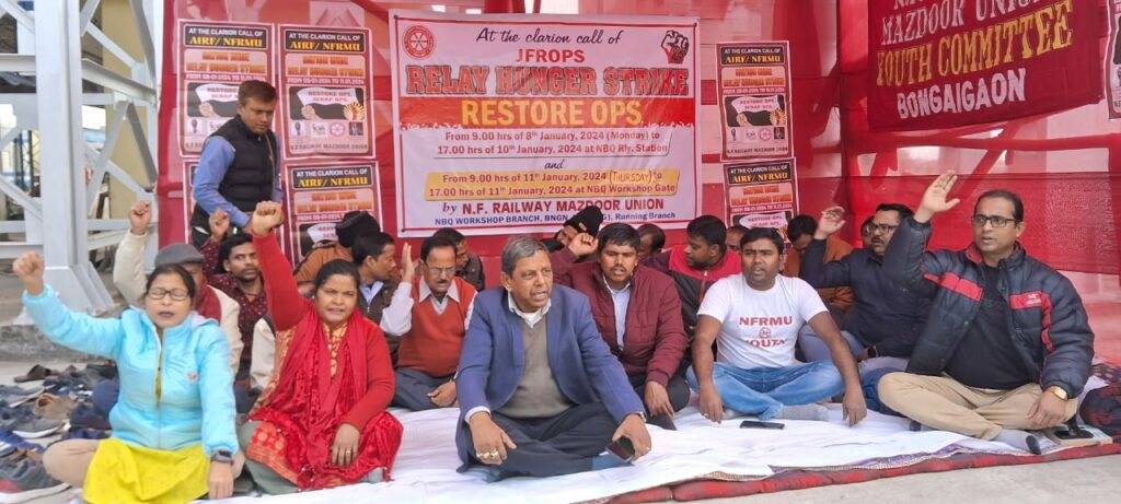 উত্তৰ পূৱ সীমান্ত ৰে’লৱে মজদুৰ ইউনিয়নৰ বঙাইগাঁও শাখাই বুধবাৰে পুৰণি পেঞ্চন নীতি প্ৰৱৰ্তন কৰাৰ দাবীত নিউ বঙাইগাঁও ৰে’ল জংচনত অনশন কাৰ্য্যসূচী ৰূপায়ণ কৰে ৷ ভাৰতৰ সকলো ট্ৰেড ইউনিয়ন আৰু ফেডাৰেচনৰ সন্মিলিত মঞ্চ জইণ্ট ফ’ৰাম ফৰ ৰেষ্টোৰেচন অৱ ওল্ড পেঞ্চন স্কীমৰ আহ্বানত ৮ জানুৱাৰীৰ পৰা অহা ১১ জানুৱাৰীলৈ ভাৰতজুৰি চলি থকা এই অনশন কাৰ্য্যসূচীত উত্তৰ পূৱ সীমান্ত ৰে’লৱে মজদুৰ ইউনিয়নৰ বঙাইগাঁও শাখাৰ প্ৰায় অৰ্ধশতাধিক সদস্যই অংশগ্ৰহণ কৰে ৷ অনশন কাৰ্য্যসূচীত অংশগ্ৰহণ কৰি উত্তৰ পূৱ সীমান্ত ৰে’লৱে মজদুৰ ইউনিয়নৰ সাধাৰণ সম্পাদক আশীষ বিশ্বাসে কয় যে ৰে’ল কৰ্মচাৰীসকলে অল ইণ্ডিয়া ৰে’লৱেমেনচ ফেডাৰেচন আৰু উত্তৰ পূৱ সীমান্ত ৰে’লৱে মজদুৰ ইউনিয়নৰ নেতৃত্বত নতুন পেঞ্চন নীতিৰ বিৰুদ্ধে আৰম্ভণিৰ পৰাই প্ৰতিবাদ কৰি আহিছে ৷