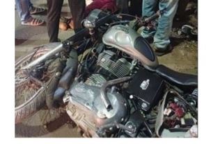 মহানগৰীৰ ছুপাৰ মাৰ্কেটৰ উৰণসেতুৰ তলত পথ দুৰ্ঘটনা। পথৰ দাঁতিৰ ৰেলিঙত খুন্দা তীব্ৰবেগী বুলেটৰ।