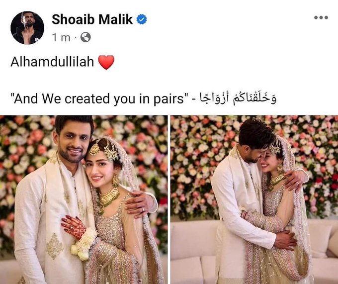 পাকিস্তানৰ অভিনেতা ছানা জাভেদৰ সৈতে বিবাহপাশত আবদ্ধ হৈছে শ্বোৱেইব মালিক: ভাৰতীয় প্ৰাক্তন টেনিছ খেলুৱৈ ছানিয়া মিৰ্জাৰ সৈতে বিচ্ছেদৰ উৰাবাতৰিৰ মাজতে পাকিস্তানৰ ক্ৰিকেট তাৰকা শ্বোৱেইব মালিকে বিখ্যাত পাকিস্তানী অভিনেত্ৰী ছানা জাভেদৰ সৈতে বিবাহপাশত আবদ্ধ হৈছে। ২০ জানুৱাৰী শনিবাৰে ছ’চিয়েল মিডিয়াত শ্বোয়াইব মালিকে নিজেই নিজৰ নিকাহৰ ছবি শ্বেয়াৰ কৰে।