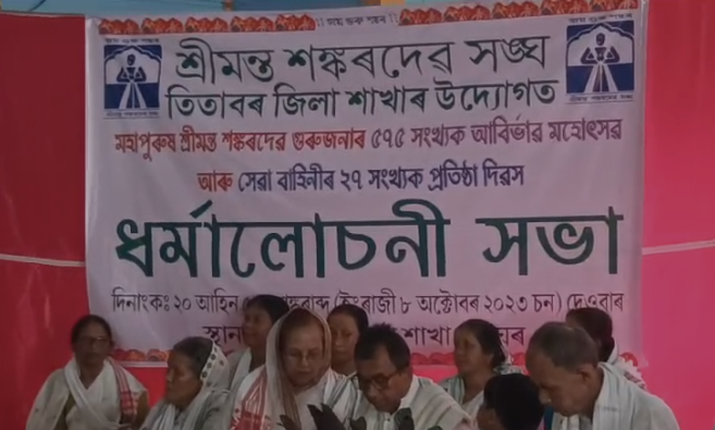 শ্ৰীমন্ত শঙ্কৰদেৱ সঙ্ঘৰ তিতাবৰ জিলা শাখাৰ উদ্যোগত শ্ৰীমন্ত শঙ্কৰদেৱৰ ৫৭৫ সংখ্যক আবিৰ্ভাৱ মহোৎসৱৰ লগতে সেৱা বাহিনীৰ ২৭ সংখ্যক প্ৰতিষ্ঠা দিৱস দেওবাৰে তিতাবৰ জিলা শাখাৰ নামঘৰত দিনযোৰা বৰ্ণাঢ্য কাৰ্যসূচীৰে অনুস্থিত হয়। প্ৰাতঃ প্ৰসঙ্গ, পৰিৱেশ নিকাকৰণ, গছপুলি ৰোপণ, পতাকা উত্তোলন আৰু নামপ্ৰসঙ্গৰ পাছতে দুপৰীয়া তিতাবৰ জিলা শাখাৰ সভাপতি সুশীল গগৈৰ সভাপতিত্বত অনুষ্ঠিত আৰু সহকাৰী সম্পাদক প্ৰাচুৰ্য প্ৰতীম বৰাই আঁত ধৰা ধৰ্মালোচনী সভা উদ্বোধন কৰে সঙ্ঘৰ তিতাবৰ জিলা শাখাৰ মাধৱদেৱ বঁটা প্ৰাপক ৰেৱানন্দ বৰুৱাই। অৰ্চনা ফুকনৰ বৰগীত পৰিৱেশনেৰে শুভাৰম্ভ হোৱা অনুষ্ঠানত সদৌ অসম কবি সন্মিলনৰ উপ-সভাপতি উজ্জ্বল পাওগামে জিলা শাখাৰ বাৰ্ষিক আলোচনী ‘অমৃত নিজৰা’ আৰু তিতাবৰৰ নন্দনাথ শইকীয়া মহাবিদ্যালয়ৰ অৱসৰপ্ৰাপ্ত অধ্যাপক ডঃ সুৰেশ চন্দ্ৰ ৰাজখোৱাই ‘অনন্তকৌটি ব্ৰহ্মাণ্ডৰ হৰি অধিকাৰী’ শীৰ্ষক এখনি গ্ৰন্থও উন্মোচন কৰে।