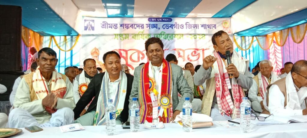 হৰিনামৰ ধ্বনিৰে, সাম্য -মৈত্ৰী -সম্প্ৰীতিৰ মহান বাণীৰে আকাশ বতাহ মুখৰিত হ’ল গেৰুৱা,পুৰন্দিয়া, মাজগাঁও আৰু ইয়াৰ উপকণ্ঠ অঞ্চল।জগতগুৰু মহাপুৰুষ শ্ৰীমন্ত শঙ্কৰদেৱৰ ধৰ্ম, সাহিত্য আৰু সাংস্কৃতিক আদৰ্শৰ ভিত্তিত সুপ্ৰতিষ্ঠিত উত্তৰ পূব ভাৰতৰ সৰ্ববৃহৎ গণতান্ত্ৰিক জাতীয় অনুষ্ঠান শ্ৰীমন্ত শঙ্কৰদেৱ সঙ্ঘৰ ভেৰগাঁও জিলা শাখাৰ সপ্তম বাৰ্ষিক অধিৱেশন ভাগি শংকৰজ্যোতি মণ্ডলৰ ব্যৱস্থাপনাত গেৰুৱা ৰাজহুৱা নামঘৰ প্ৰাংগণত দুদিনীয়া বৰ্ণাঢ্য কাৰ্যসূচীৰ অন্ততঃ ২৮ জানুৱাৰীৰ নিশা সফল সামৰণি পৰে। ৰাভা, বড়ো, কোচ ৰাজবংশী, শৰণীয়া কছাৰী কৃষ্টি দল,বেণ্ড পাৰ্টি, খোল- তাল- মাদল, বংশী বাদন, ওজাপালি, নাগাৰা নাম ,থিয়নাম, দিহানাম কৃষ্ণ কৃষ্ণ, হৰি নাম, জয় গুৰু শংকৰ, জয় শ্ৰীমন্ত শঙ্কৰদেৱ সঙ্ঘৰ ধ্বনিৰে আকাশ বতাহ মুখৰিত হৈ দ্বিতীয় বৈকুণ্ঠপুৰীলৈ ৰূপায়িত হল গেৰুৱা ৰাজহুৱা নামঘৰ প্ৰাংগণৰ লগতে পুৰন্দিয়া, মাজগাঁও, পশ্চিম ফুটুকীবাৰী,পূৱ ফুটুকীবাৰী, পলাহগড়, জলাহ, বনগাঁও। ডাইনাচ’ৰ, শিশু কৃষ্ণ, বিভিন্ন জাতি জনগোষ্ঠীৰ সজপাৰে ভাগৱত ভ্ৰমণ আৰু সাংস্কৃতিক শোভাযাত্ৰাৰে বৰ্ণিল কৰা অনুষ্ঠানভাগ শুভ উদ্বোধন কৰে শংকৰী সঙ্গীতৰ বিশিষ্ট শিল্পী দৰ্শন বৰুৱাই।