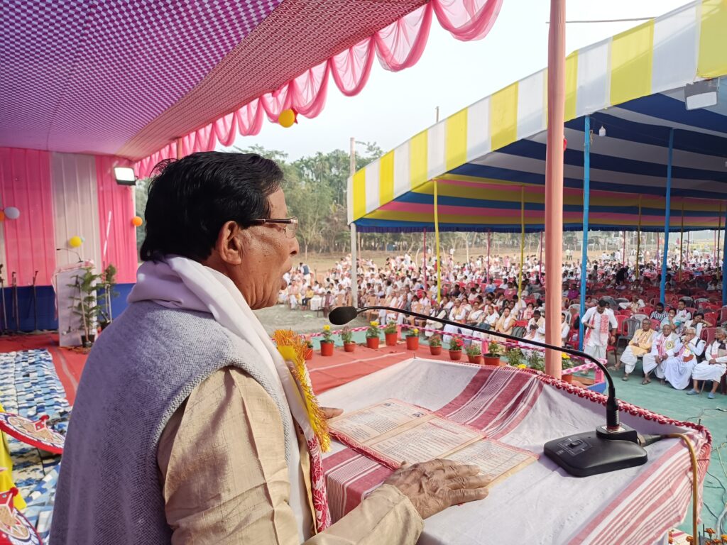 নিৰ্দিষ্ট বক্তাৰ ভাষণত শ্ৰীমন্ত শংকৰদেৱ সংঘৰ গোলাঘাট জিলা শাখাৰ সম্পাদক দেৱাঞ্জন বৰাই সম্প্ৰতি পৃথিৱী খনত বিজ্ঞান আৰু প্ৰযুক্তিবিদ্যাৰ অৱদানে মানুহক ভোগবাদী আৰু বস্তুবাদী কৰি তোলা বুলি উল্লেখ কৰি কয়-এনে পৰিবেশত সমাজত ধৰ্মক যুক্তিৰে প্ৰতিষ্ঠা কৰিব লাগিব। মানৱ ধৰ্মই প্ৰকৃত ধৰ্ম বুলি উল্লেখ কৰি তেওঁ মহাপুৰুষ শ্ৰীমন্ত শঙ্কৰদেৱৰ কৰ্ম সংস্কৃতি,মানৱ কল্যাণ আৰু জীৱ জগতৰ কল্যাণৰ বাণী সমূহ নৱ প্ৰজন্মৰ মাজত যুক্তিৰে দাঙি ধৰাৰ পোষকতা কৰে।