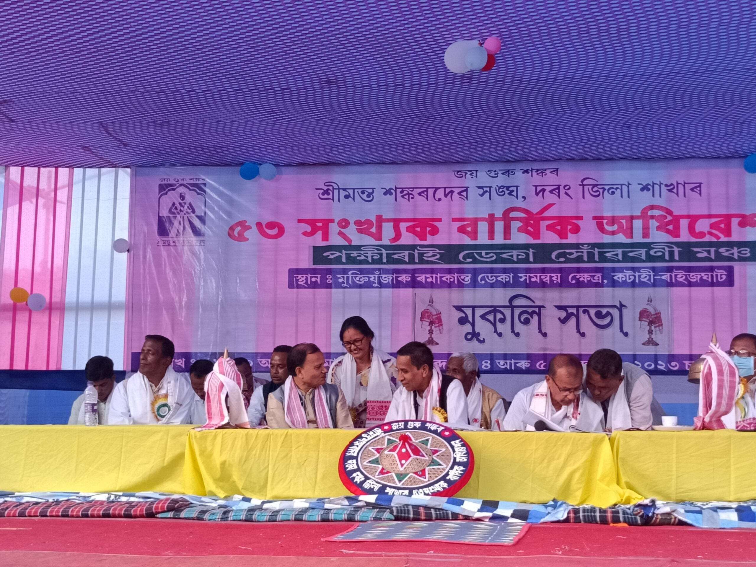 দৰং জিলা শ্ৰীমন্ত শংকৰদেৱ সংঘৰ ৫৩ সংখ্যক ৰাইজঘাট অধিবেশনৰ সফল সামৰণি পৰে। পুৱা সংঘৰ ধৰ্মধ্বজা উত্তোলন কৰি নৱ নিৰ্বাচিত জিলা সভাপতি হৰেশ্বৰ শইকীয়াই শ্ৰীমন্ত শংকৰদেৱ সংঘৰ প্ৰতিষ্ঠাপক সন্মানীয় ব্যক্তি সকলৰ প্ৰতি শ্ৰদ্ধা নিবেদন কৰে। ইয়াৰ পিচতে মুক্তিযুঁজাৰু ৰমাকান্ত ডেকা সমন্বয় ক্ষেত্ৰৰ পৰা ভাগৱত ভ্ৰমণ আৰু বাৰেৰহণীয়া সাংস্কৃতিক শোভাযাত্ৰা উলিওৱা হয়।