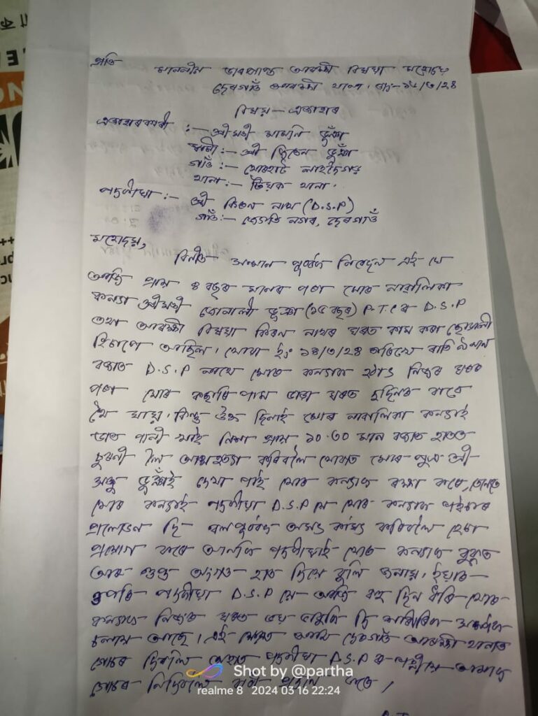 DSPৰ বিৰুদ্ধে নাবলিকা নিৰ্যাতনৰ ভয়ংকৰ অভিযোগ । দেৰগাঁও লাচিত বৰফুকন পুলিচ একাডেমিৰ DSP কিৰণ নাথৰ বিৰুদ্ধে কিশোৰী নিৰ্যাতনৰ অভিযোগ। কিশোৰী গৰাকীক শাৰীৰিক আৰু মানসিক নিৰ্যাতন চলোৱাৰ উপৰিও যৌন আতিশয্য চলাই অহাৰ অভিযোগ পৰিয়ালৰ লোকৰ।