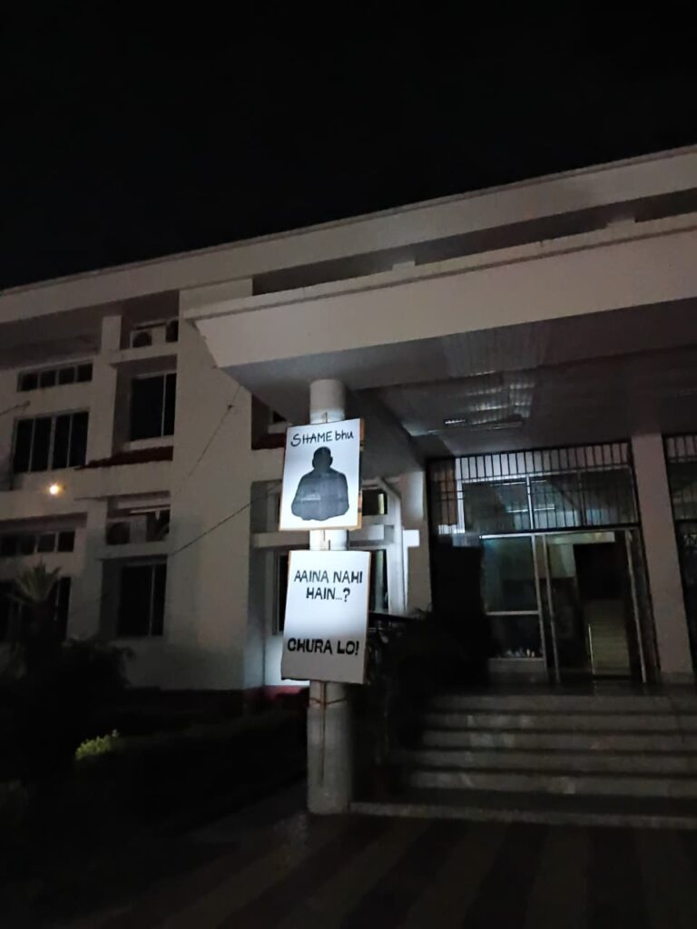 উপাচাৰ্য শম্ভুনাথ সিঙৰ বিপৰীতে বিশ্ববিদ্যালয় চৌহদত ওলমিছে ছেম্ভুনাথ শীৰ্ষক পোষ্টাৰ৷উল্লেখযোগ্য যে,বিশ্ববিদ্যালয়খনত চলি থকা দুৰ্নীতিৰ বিৰুদ্ধে ছাত্ৰসমাজে ৰূপায়ণ কৰা দৰ্পণ সত্যাগ্ৰহ শীৰ্ষক কাৰ্যসূচী সন্দৰ্ভত কোৱা হৈছে যে,যেতিয়া দুৰ্নীতিয়ে নিজকে চাবলৈ অস্বীকাৰ কৰিছে তেনে সময়তে আমি সত্যৰ আইনাখন ডাঙি ধৰিছোঁ৷উল্লেখযোগ্য যে বগা পোচাক পৰিধান কৰি এই প্ৰতিকী আন্দোলনত অংশগ্ৰহণ কৰি ছাত্ৰ সমাজে লগতে কয় যে নিৰ্ভেজাল, শান্তি আৰু ঐক্যতাৰ প্ৰতীক হিচাপে সকলোৱে বগা পোচাক পৰিধান কৰি ৰূপায়ণ কৰে এই দৰ্পণ সত্যাগ্ৰহ কাৰ্যসূচীৰ৷হাতে হাতে আইনা লৈ প্ৰতিবাদকাৰী সকলে তেজপুৰ বিশ্ববিদ্যালয়ৰ আভ্যন্তৰত সংঘটিত হৈ থকা সকলো অনিয়ম প্ৰতিফলিত কৰা এই আন্দোলনৰ কাৰ্যসূচীত অংশ লৈ ছাত্ৰ সমাজে কয় যে,আইনাৰ প্ৰতিফলন চাবলৈ দুৰ্নীতি অনিয়মৰে জড়িত সকলে ভয় কৰে৷
