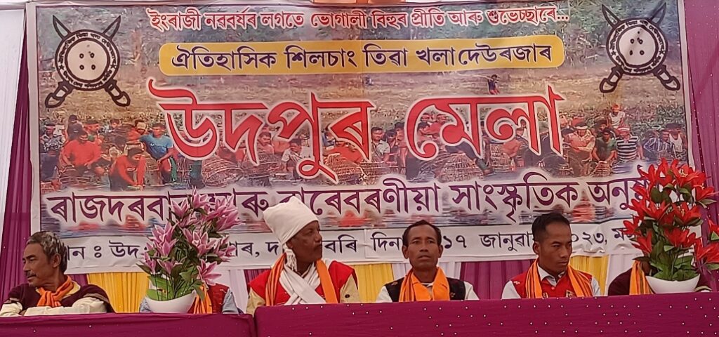 মৰিগাঁও জিলাৰ ধৰমতুলত আজি উদযাপন কৰা হ’ল ঐতিহাসিক শিলচাং তিৱা খলা দেউৰজাৰ উদপুৰ মেলা। সম্পাদন হ’ল পাহাৰ-ভৈয়ামৰ বিনিময় প্ৰথা। পুৱা এই বিনিময় প্ৰথা উদ্বোধনৰ পিচতে ভৈয়ামৰ উৎপাদিত ভোগৰ সামগ্ৰী পিঠা-পনাৰ সৈতে পাহাৰৰ উৎপাদিত কেচা সামগ্ৰী বিনিময় কৰা হয়।