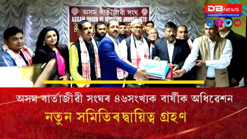 অসম বাৰ্তাজীৱী সংঘৰ ৪৬সংখ্যক দ্বি-বাৰ্ষিক অধিৱেশনখনি সোমবাৰে গুৱাহাটী মহানগৰীৰ ৰূপনগৰৰ মিডিয়া ট্ৰাষ্টত অনুষ্ঠিত হয়। অধিৱেশন উপলক্ষে পতাকা উত্তোলন, স্মৃতি তৰ্পণ, প্ৰতিনিধি সভা তথা সাধাৰণ সভা আদি অনুষ্ঠিত হয়। সেই অনুসৰি পুৱা ১০ বজাত সংঘৰ পতাকা উত্তোলন কৰে সভাপতি টুটুমণি ফুকনে। ১০-১৫ বজাত স্মৃতি তৰ্পণ মুকলি কৰে সাধাৰণ সম্পাদক মুকুট ৰাজ শৰ্মাই। আনহাতে দিনৰ ১১ বজাত অনুষ্ঠিত হয় প্ৰতিনিধি সভা আৰু সাধাৰণ সভা।