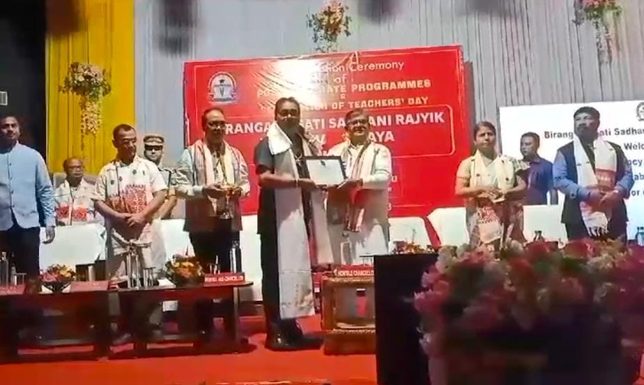 এক বিশেষ গাম্ভীৰ্য‌পূৰ্ণ অনুষ্ঠানত স্হানীয় মন্ত্ৰী বিধায়ক আৰু বহুতো বিশিষ্ট ব্যক্তিৰ উপস্থিতিত বিশ্ববিদ্যালয়ৰ তৰফৰ পৰা তেখেতক এখন চেলেং চাদৰ, গামোচা, মানপত্ৰ আৰু এখন শৰাইৰে সন্মানিত কৰে ৰাজ্যপাল গোলাব চান্দ কাটাৰিয়াই।
