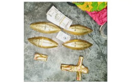 অভিযানত জব্দ ৪খন নকল সোণৰ নাওঁ, ২টা সোণৰ মূৰ্তি আৰু ৫০০টকীয়া জালনোট। দুই সৰবৰাহকাৰী ছফিকুল ইছলাম আৰু চাহাবুদ্দিনক আটক।।