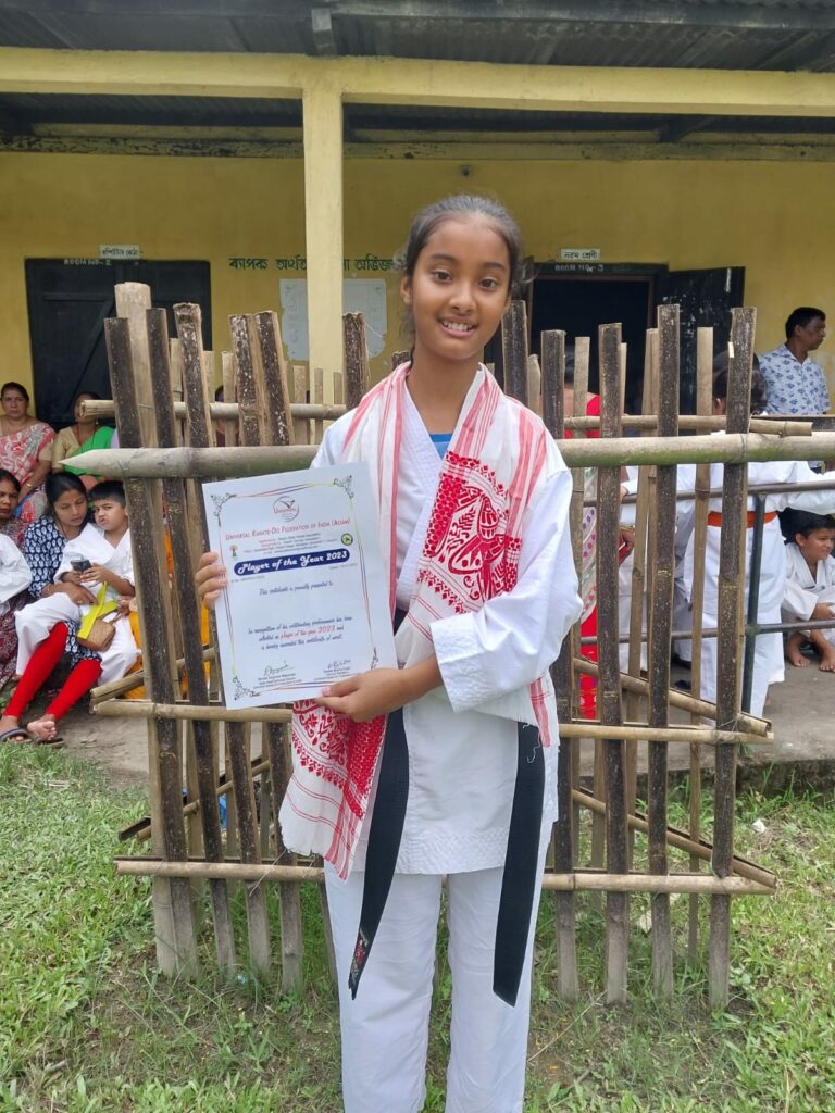 আজি দিনযোৰা কার্যসূচীৰে কুলহাটী হাইস্কুল প্ৰাঙ্গণত অনুষ্ঠিত হয় কালাৰ বেল্টৰ পৰীক্ষা। এই অনুষ্ঠানতে নৰ্থ ইষ্ট কাৰাটে প্ৰতিযোগিতাত ব্ৰঞ্জৰ পদক লাভ কৰা হৃষিতা দাসক ইউনিৰ্ভাচেল কাৰাটে ফেডাৰেশ্যন অব ইণ্ডিয়াৰ অসম শাখাৰ তৰফৰ সম্বৰ্ধনা জনোৱা হয় । লগতে ২০২২ বৰ্ষৰ ২৫ ডিচেম্বৰত অনুষ্ঠিত কালাৰ বেল্টৰ পৰীক্ষাৰ শ্ৰেষ্ঠ তিনিগৰাকী খেলুৱৈ ক্ৰমে বৰ্ণি কাৰাটে একাডেমীৰ আলিছা ফাৰহাদ, দমদমা কাৰাটে একাডেমীৰ বিতোপন মালাকৰ আৰু বহ্নিমান কাৰাটে একাডেমীৰ ৰাজশ্ৰী বৈশ্যক মানপত্ৰ আৰু ট্ৰফি প্ৰদান কৰা হয় ।