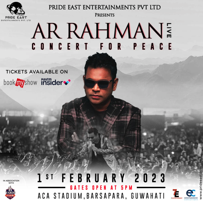 একাডেমী বঁটা বিজয়ী তথা ভাৰতীয় সংগীতৰ গুৰু এ আৰ ৰহমানে “কনচাৰ্ট অৱ পিছ” নামৰ এক মেগা ইভেণ্টত দৰ্শকক মোহিত কৰিবলৈ সাজু হৈছে, য’ত তেওঁ গুৱাহাটীত নিজৰ অনুষ্ঠান পৰিৱেশন কৰিব।