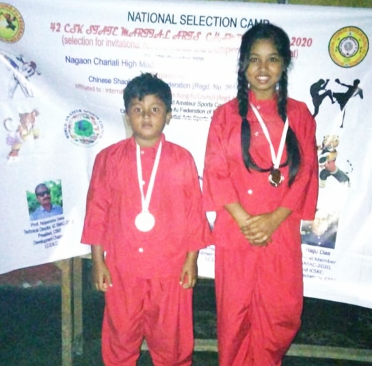 গুৱাহাটীৰ বাইহাটা চাৰিআলিত অনুষ্ঠিত মাৰ্চিয়েল আৰ্টৰ প্ৰতিযোগীতাত শোণিতপুৰ জিলাৰ জামুগুৰিহাটৰ দুই ভাতৃ ভগ্নীয়ে সফলতা কঢ়িয়াই আনিবলৈ সক্ষম হৈছে ৷ জামুগুৰিহাটৰ উদ্ধবৰাচুক গাঁৱৰ কৃষ্ণ শইকীয়া আৰু কল্পনা শইকীয়াৰ দুই সন্তান ক্ৰমে ১১ বছৰীয়া জীয়ৰি টিনা শইকীয়া আৰু ৭ বছৰীয়া পুত্ৰ বিজিত শইকীয়াই ৰাজ্যৰ ভিন্ন প্ৰান্তৰ কেবাগৰাকীও খেলুৱৈৰ লগত প্ৰতিদ্বন্দ্বীতা কৰি ৰূপৰ পদক অৰ্জনৰ জৰিয়তে ৰাষ্ট্ৰীয় পৰ্য্যায়ৰ মাৰ্চিয়েল আৰ্ট চেম্পিয়নশ্বিপলৈ নিৰ্বাচিত হৈছে ৷ চাইনিজ চাওলিঅন কুংফু ফেডাৰচনে আয়োজন কৰা এই প্ৰতিযোগীতাখনিত ৪১ কে:জি:ৰ শাখাত টিনা শইকীয়াই আৰু ৩১ কে:জি:ৰ শাখাত বিজিত শইকীয়াই এই সফলতা অৰ্জন কৰিবলৈ সক্ষম হয় ৷ কেৱল মাত্ৰ তিনিমাহ প্ৰশিক্ষকৰ ওচৰত প্ৰশিক্ষণ গ্ৰহণ কৰি এনে অভাৱনীয় সফলতা লাভ কৰা দুই কণমানিৰ এই সফলতাত উৎফুল্লিত হৈ পৰিছে অভিভাৱকৰ লগতে জামুগুৰিবাসী ৰাইজ ৷ নৱবৰ্ষত ৰূপৰ পদক বিজয়ী দুই কণমাণি ১১ বছৰীয়া টিনা আৰু ৭ বছৰীয়া বিজিতে গুজৰাটত অনুষ্ঠিত হ’বলগীয়া ৰাষ্ট্ৰীয় পৰ্য্যায়ৰ চেম্পিয়নশ্বিপত অংশ গ্ৰহন কৰিব বুলি জানিব পৰা গৈছে৷দুয়োগৰাকী ভাতৃ ভগ্নীৰ এই সফলতাত জামুগুৰিহাটৰ বিভিন্ন দল সংগঠণ-অনুষ্ঠান-প্ৰতিষ্ঠানে শলাগ লৈছে ৷