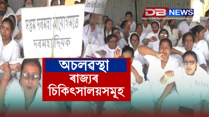 ৬ মাৰ্চ, ২০২৫: ৰাজ্যৰ স্বাস্থ্য পৰিসেৱাত সংকট অব্যাহত ! National Health Mission (NHM)ৰ ঠিকাভিত্তিক কৰ্মচাৰীসকলে তেওঁলোকৰ বিভিন্ন দাবী লৈ তৃতীয় দিনতো কৰ্মবিৰতি পালন কৰি আহিছে, যাৰ ফলত ৰাজ্যৰ চিকিৎসালয় আৰু স্বাস্থ্য কেন্দ্ৰসমূহত অচলাৱস্থা সৃষ্টি হৈছে ।