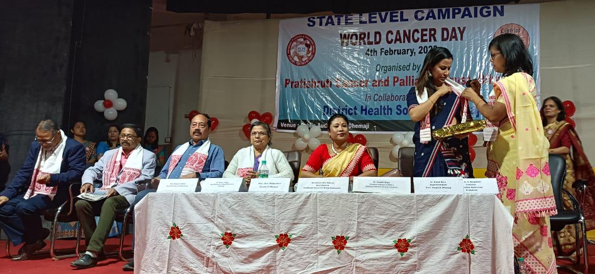 কৰ্কট ৰোগৰ সজাগতাৰ হকে কাম কৰি অহা ডিব্ৰুগড়ৰ প্ৰতিশ্ৰুতি কেন্সাৰ এণ্ড পেলিয়েটিভ ষ্ট্ৰাষ্ট চমুকৈ ‘প্ৰতিশ্ৰুতি’ৰ উদ্যোগত আৰু ধেমাজি স্বাস্থ্য সমাজৰ সহযোগত আজি ৪ ফেব্ৰুৱাৰীত বিশ্ব কৰ্কট দিৱস পালন কৰা হয়৷ এই দিৱস উপলক্ষে ধেমাজি ৰাজহুৱা প্ৰেক্ষাগৃহত জিলাখনৰ তিনি শতাধিক আশা কৰ্মী, এনএম, অংগনবাড়ী কৰ্মীসকলৰ উপস্থিতিত আয়োজন কৰা গাম্ভীৰ্যপূৰ্ণ সভাত মুখ্য অতিথি হিচাপে বিশিষ্ট অসমীয়া বোলছবি অভিনেত্ৰী তথা ‘প্ৰতিশ্ৰুতি’ৰ ‘ছেভ লাইভ ব্ৰেণ্ড এম্বেছাদৰ’ বৰষাৰাণী বিষয়া আৰু বিশিষ্ট লোকসংগীতৰ শিল্পী জীনা ৰাজকুমাৰীয়ে সন্মানীয় অতিথি হিচাপে অংশগ্ৰহণ কৰি বক্তব্য আগবঢ়ায়৷ সভাত ‘প্ৰতিশ্ৰুতি’ৰ ছেভ লাইভ ব্ৰেণ্ড এম্বেছাদৰ বৰষাৰাণী বিষয়াই ‘প্ৰতিশ্ৰুতি’ৰ স’তে কাম কৰিবলৈ অত্যন্ত সুখী বুলি মত প্ৰকাশ কৰি নিজৰ অভিজ্ঞতাৰে কৰ্কট ৰোগৰ বিৰুদ্ধে যুঁজ কৰি জয়ী হোৱা সকলৰ লগতে সজাগতাৰ হকে কাম কৰি অহা সংশ্লিষ্ট সকলোকে ধন্যবাদ জ্ঞাপন কৰি ভাষণত কয় যে এবছৰত বিশ্বত এক কোটি লোকৰ কৰ্কট ৰোগত আক্ৰান্ত হৈ মৃত্যু হয়, যিটো অত্যন্ত উদ্বেগজনক৷ এই ৰোগ যদিহে প্ৰাথমিক পৰ্যায়ত ধৰা পৰে তেন্তে সম্পুৰ্ণৰূপে বচাৰ সম্ভাৱনা আছে৷ কিন্তু ইয়াৰ বাবে আমাৰ মাজত বিশেষকৈ সজাগতাৰ প্ৰয়োজন৷ আনহাতে কৰ্কট বিজয়িনী তথা বিশিষ্ট লোকসংগীতৰ শিল্পী জীনা ৰাজকুমাৰীক এই সভাতেই প্ৰদান কৰা হয় কৰ্কট বিজয়িনী সন্মান। নিজৰ অভিজ্ঞতা বৰ্ণনা কৰি এই ৰোগৰ সজাগতাৰ মাজেৰে অনেক মৃত্যুৰ হাৰ ৰোধ কৰাটো সম্ভৱ বুলি শিল্পী গৰাকীয়ে বক্তব্য আগবঢ়ায়৷ ‘প্ৰতিশ্ৰুতি’ৰ যুটীয়া সম্পাদক তথা সাংবাদিক ৰতন হাজৰিকা আৰু ধেমাজি ছোৱালী উচ্ছতৰ মাধ্যমিক বিদ্যালয়ৰ অৱসৰপ্ৰাপ্ত অধ্যক্ষা লাৱণ্য লাহনে আঁত ধৰা এই সভাত আদৰণি ভাষণ প্ৰদান কৰে ‘প্ৰতিশ্ৰুতি’ৰ উপসভাপতি দীপালি শইকীয়াই৷ অনুুষ্ঠানত সমল ব্যক্তি হিচাপে উপস্থিত থাকি এএমচিএইচৰ পেথল’জি বিভাগৰ সহযোগী অধ্যাপক তথা ককৰ্ট ৰোগৰ বিশিষ্ট গৱেষক ডাঃ গায়ত্ৰী গগৈ আৰু ধেমাজি জিলাৰ যুটীয়া স্বাস্থ্য সঞ্চালক ডাঃ সৌৰভ গগৈয়ে কৰ্কট ৰোগৰ বিভিন্ন কাৰণ আৰু প্ৰতিকাৰৰ উপায় তথা চৰকাৰী আঁচনিসমূহৰ ওপৰত, ধেমাজি অসামৰিক চিকিৎসালয়ৰ অধীক্ষক ডাঃ বিনোদ বৰাই ৰোগীয়ে সঠিক সময়ত চিকিৎসা গ্ৰহণ কৰি মানসিক দৃঢ়তাৰে কিদৰে ৰোগটোৰ পৰা বাচিব পাৰি আৰু ‘প্ৰতিশ্ৰুতি’ৰ উপশমী চিকিৎসাৰ আহ্বায়ক ডাঃ জি.এছ. বৰগোহাঁয়ে ৰোগটোৱে আক্ৰমণ কৰাৰ তৃতীয় পৰ্যায়ৰ পিছত কিদৰে মৃত্যুপৰ্যন্ত উপশমী চিকিৎসাৰ জৰিয়তে ৰোগী তথা ঘৰখনক উদ্ধাৰ কৰিব পাৰি সেই সম্পৰ্কত মূল্যৱান বক্তব্য আগবঢ়ায়৷ জিলা প্ৰশাসনৰ হৈ উপস্থিত থকা অতিৰিক্ত সহকাৰী আয়ুক্ত টিলিনা টাইড উপস্থিত থাকি অনাগত দিনত এনেধৰণৰ সজাগতাৰ কামত ‘প্ৰ