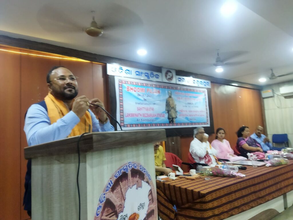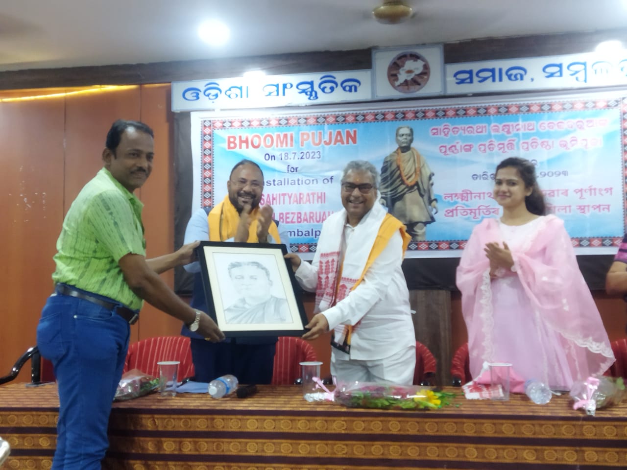 সাহিত্যৰথী লক্ষ্মীনাথ বেজবৰুৱা স্মৃতি ৰক্ষা সমিতিৰ সভাপতি প্ৰদ্যুৎকুমাৰ চৌধুৰীৰ সভাপতিত্বত প্ৰতিমূৰ্তিৰ আধাৰশিলা স্হাপনৰ বাবে আয়োজিত সভাখনত ভাষণ প্ৰদান কৰি উৰিষ্যাৰ সাহিত্য,সাংস্কৃতিক আৰু পৰ্যটন মন্ত্রী অশ্বিনী কুমাৰ পাত্রই লেখাৰ মাজেৰে বেজবৰুৱাই দুয়ো ৰাজ্যৰ মাজত সমন্বয় সাধন কৰা বুলি ব্যক্ত কৰি বেজবৰুৱাক মৃত্যুঞ্জয়ী সাহিত্যিক বুলি কয়। সম্বলপুৰৰ কালেক্টৰতথা জিলা দণ্ডাধীশ অসম জীয়ৰী অনন্যা দাসে ভাষণত বেজবৰুৱাক সমন্বয়ৰ বাহক বুলি উল্লেখ কৰাৰ লগতে সাধনা গৃহত বেজবৰুৱাৰ সৃষ্টিৰ ইংৰাজী অনুবাদ গ্ৰন্হ ৰখাৰ পোষকতা কৰে। সভাত অসমৰ সাংস্কৃতিক সঞ্চালিকা মীনাক্ষী দাস নাথেও ভাষণ প্ৰদান কৰে। স্হানীয় ইতিহাসবিদ তথা জ্যেষ্ঠ সাংবাদিক দিপক পাণ্ডাই আত ধৰা সভাখনত স্মৃতি ৰক্ষা সমিতিৰ সম্পাদক ৰন্টুডেকাই শলাগৰ শৰাই আগবঢ়াই অসমৰ মুখ্যমন্ত্ৰী ড০ হিমন্ত বিশ্ব শৰ্মাই অসমৰ পৰা সম্বলপুৰলৈ সাহিত্য ৰথী এক্সপ্ৰেছ নামৰ এখন ৰেল চলাচল কৰোৱাৰ বাবে প্ৰস্তাব দিয়াৰ কথা সদৰী কৰে।