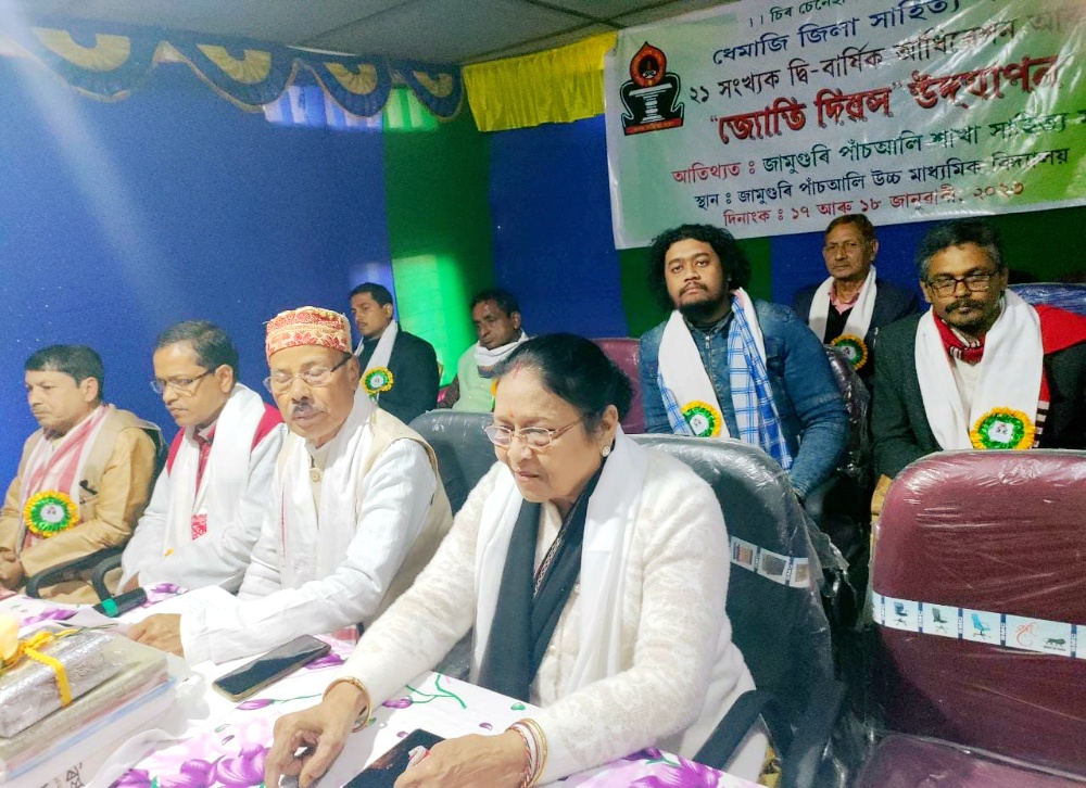জামুগুৰি পাঁচআলি উচ্চ মাধ্যমিক বিদ্যালয়ত আজি দিনৰ ১ বজাত ধেমাজি জিলা সাহিত্য সভাৰ বিদায়ী সভাপতি বিনীতা চৌধুৰী গাৰোদিয়া আৰু নৱনিৰ্বাচিত সভাপতি বিনোদ কুমাৰ গগৈয়ে ক্ৰমান্বয়ে সভাপতিত্ব কৰা মুকলি সভাত অসম সাহিত্য সভাৰ প্ৰাক্তন কাৰ্যনিৰ্বাহক সদস্য অজিত প্ৰসাদ শৰ্মা, লক্ষীমপুৰ জিলা সাহিত্য সভাৰ সভাপতি বিপুল শৰ্মা বৰুৱা, সহকাৰী সম্পাদক প্ৰশান্ত মোদক, ধেমাজি জিলা সাহিত্য সভাৰ প্ৰাক্তন সভাপতি বিমল ৰাজখোৱা, মাজুলী জিলা সাহিত্য সভাৰ কাৰ্যনিৰ্বাহক সদস্য শংকুসিদ্ধ নাথ প্ৰমুখ্যে কেইবাজনো সাহিত্যসেৱকে বিশিষ্ট অতিথি হিচাপে অংশগ্ৰহন কৰে৷