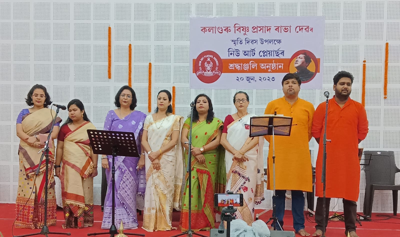 সমগ্ৰ দেশৰ লগতে গুৱাহাটীৰ অগ্ৰণী সামাজিক- সাংস্কৃতিক অনুস্থান নিউ আৰ্ট প্লেয়াৰ্ছে যোৱা ২০ জুন তাৰিখে কলাগুৰু বিষ্ণু ৰাভা দিৱস উপলক্ষে এই মহান শিল্পী গৰাকীক বিশেষ ভাবে শ্ৰদ্ধাঞ্জলি জ্ঞাপন কৰে৷ সন্ধিয়া ৬-০০বজাৰ পৰা সংঘৰ নৱনিৰ্মীত প্ৰেক্ষাগৃহত আয়োজিত এই অনুষ্ঠানৰ আৰম্ভণিতেই সভাপতি অজয় কুমাৰ দত্তৰ লগতে উপস্থিত সদস্য সকলে বিষ্ণু প্ৰসাদ ৰাভাৰ প্ৰতিচ্ছবিৰ সন্মুখত বন্তি প্ৰজ্বলন আৰু পুস্পাৰ্ঘৰে শ্ৰদ্ধাঞ্জলি জ্ঞাপন কৰে৷ শ্ৰদ্ধাঞ্জলি অনুস্থানৰ পিচতেই সংঘৰ সভাপতি অজয় কুমাৰ দত্তৰ ভাষণ প্ৰসংগত অনুস্থানত উপস্থিত সকলোকে আদৰণি জনোৱাৰ লগতে এই মহান ব্যক্তি গৰাকীৰ সৈতে ব্যক্তিগত সান্নিধ্যত লাভ কৰা কেতবোৰ ৰাজনৈতিক ঘটনাৰ অভিজ্ঞতা ৰোমন্থন কৰে৷ ইয়াৰ পিচতেই নীৰদা চক্ৰৱৰ্তীয়ে বিষ্ণু প্ৰসাদ ৰাভাই বিভিন্ন ক্ষেত্ৰত দেশলৈ আগবঢ়োৱা উল্লেখযোগ্য বৰঙনি সমূহৰ চমুকৈ আলোকপাত কৰে৷ সংঘৰ তৰফৰ পৰা অনুস্থানত উপস্থিত বিশিষ্ট অতিথি ক্ৰমে মাধুৰীমা সেন বৰুৱা, কুন্তল মণি শৰ্মা বৰদলৈক, অনুপম চৌধুৰী আৰু অতুল দত্তক সম্বৰ্ধনা জ্ঞাপন কৰে৷