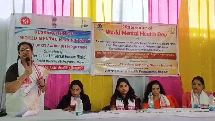 সমগ্ৰ বিশ্বৰ লগতে আজি নগাঁও জিলাতো বিশ্ব মানসিক স্বাস্থ্য দিৱসটি উদযাপন কৰা হয়। সেই উপলক্ষে নগাঁও ভোগেশ্বৰী ফুকননী অসামৰিক চিকিৎসালয়ৰ মানসিক ৰোগ বিভাগৰ উদ্যোগত মঙলবাৰে দিনজোৰা কাৰ্যসূচীৰে বিশ্ব মানসিক স্বাস্থ্য দিৱসটি উদযাপন কৰা হয়।