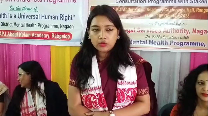 ইয়াৰ পাছতে দুপৰীয়া ১২ বজাত জিলা আইন সেৱা প্ৰাধিকৰণ নগাঁও আৰু মানসিক ৰোগ বিভাগৰ যৌথ উদ্যোগত ড° এ পি জে আব্দুল কালাম একাডেমি ৰাঙলুত এখন সজাগতা সভা অনুষ্ঠিত হয় ৷