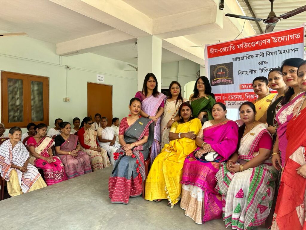 গুৱাহাটীৰ কাহিলীপাৰাস্থিত চেনেহ নামৰ বৃদ্ধাশ্ৰম এটিত দীন -জ্যোতি ফাউণ্ডেশ্যনৰ উদ্যোগত দিনযোৰা কাৰ্যসূচীৰে বিশ্ব নাৰী দিৱস উৎযাপন কৰা হয় । দিৱসৰ লগত সংগতি ৰাখি আশ্ৰমটোত থকা প্ৰায় ৩০গৰাকী মহিলাৰ এক বিনামূলীয়া স্বাস্থ্য পৰীক্ষা সম্পন্ন কৰা হয় । উক্ত পৰীক্ষাত সহযোগ কৰে ফাউণ্ডেশ্যনৰ উপদেষ্টা ড° সুনীল মল্ল বূজৰবৰুৱা আৰু প্ৰখূতি বিশেষজ্ঞ ড° ইৰা বিশ্বাস। লগতে মহিলা সকলৰ মাজত দৈনন্দিন ব্যৱহাৰ্য সামগ্ৰীও বিতৰণ কৰা হয়।